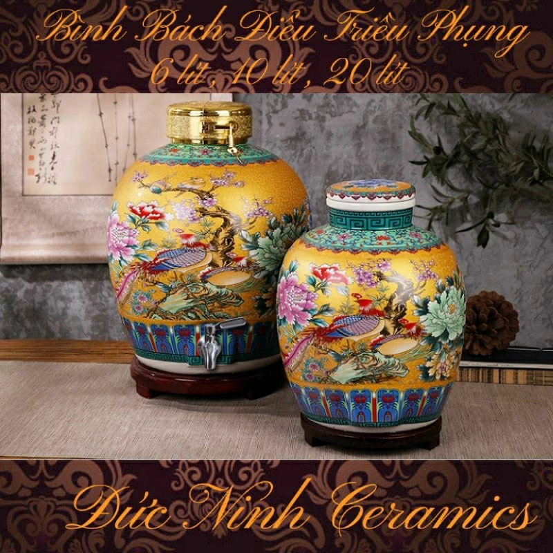 🔥 Bình ngâm rượu gốm sứ cao cấp Bách Điểu Triều Phụng 5 lít , 10 lít , 18 lít đang giảm giá!