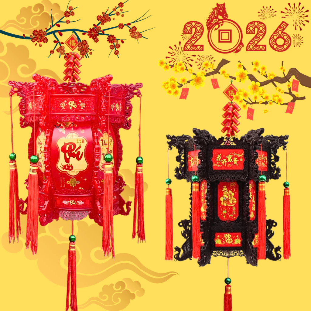 - Đèn lồng lục giác xoay 360 độ: Đèn lồng lục giác xoay 360 độ trang trí Tết 2026 là một chiếc đèn lồng độc đáo với thiết kế lục giác và có thể xoay 360 độ để tạo ra nhiều góc nhìn khác nhau.
