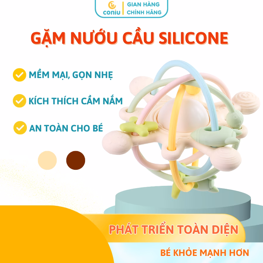 Giải pháp cho mẹ: Gặm Nướu Cầu Silicone Coniu Siêu Mềm Mại Có Trục Xoay, Âm Thanh Giúp Tăng Khả Năng Cầm Nắm Cho Bé