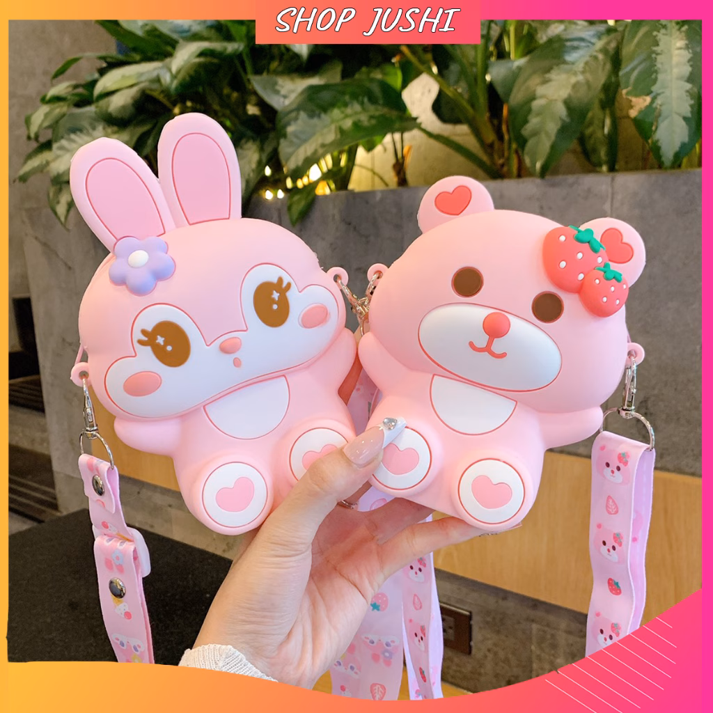 Túi cho bé gái đeo chéo vai mini silicon xinh cute trẻ em đi chơi hình gấu, thỏ, capybara, Labubu