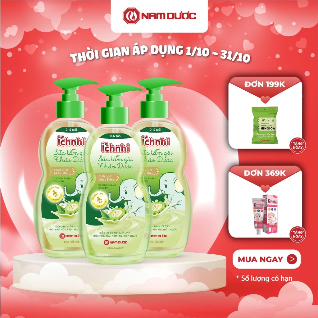 🔥 Combo 3 chai Sữa tắm gội thảo dược Ích Nhi, chai 200ml, sữa tắm cho bé giúp giảm mụn nhọt,hăm da,rôm sảy,ngứa, dưỡng da đang giảm giá!