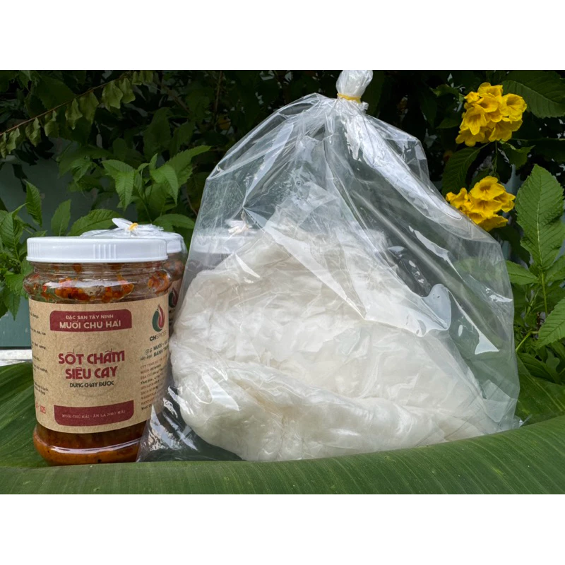 🔥 [Combo 1kg] 500gr rìa bánh tráng phơi sương Củ Chi + hủ sốt chấm chú Hải cay vừa hoặc siêu cay 500gr đang giảm giá!